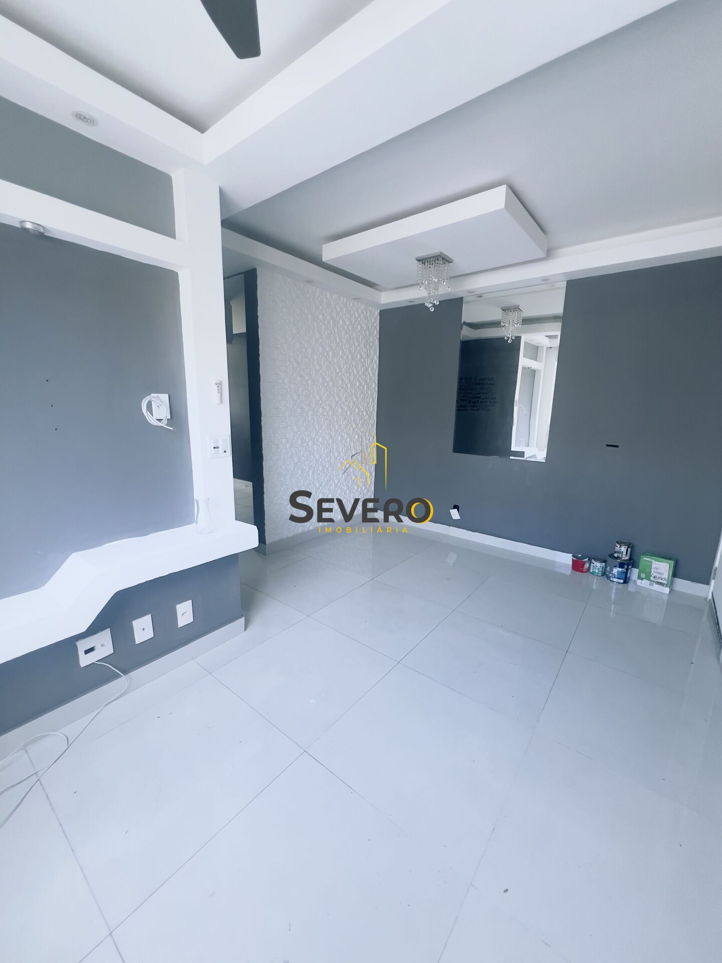 Sala Ampla com teto rebaixado em gesso com iluminação embutida.