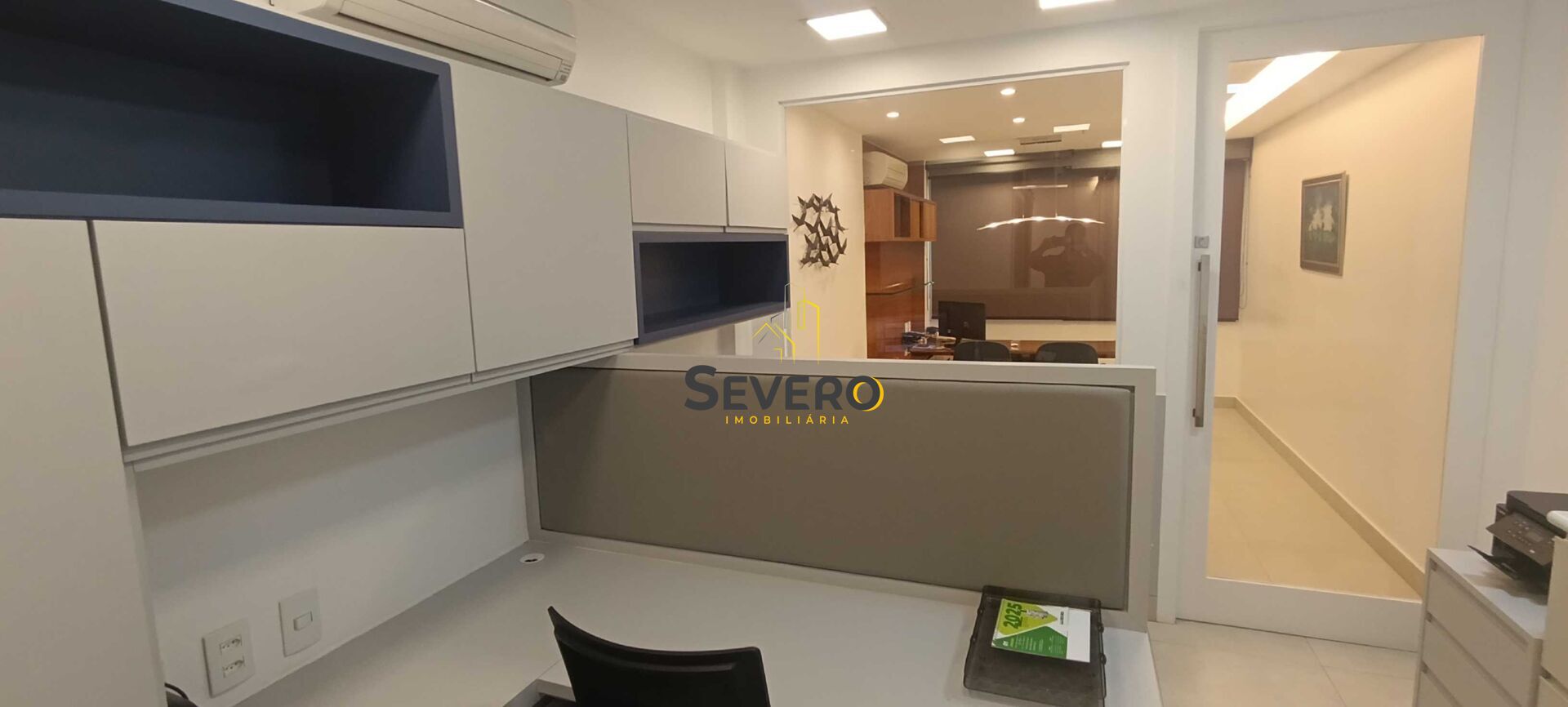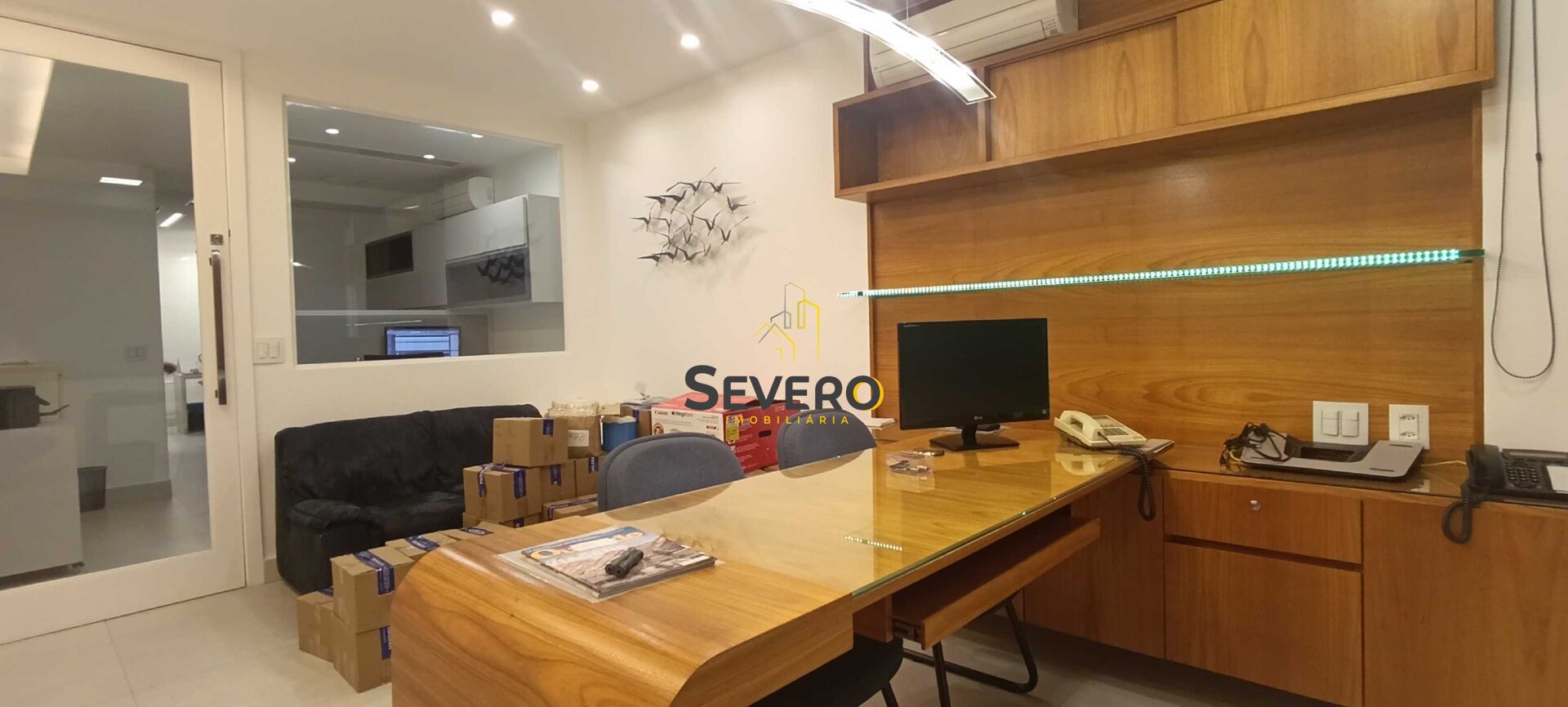 Sala de 43m², recepção, copa, área de serviço, banheiro, almoxarife ( deposito), duas baias em madeira e fórmica já prontas, sala com porta em vidro, janelas em vidro duplo com proteção acústica.